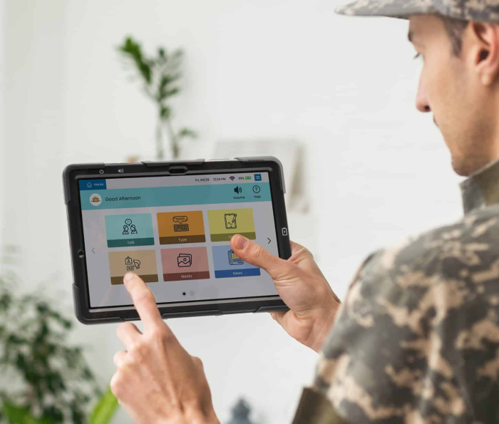 Lingraphica will partner with you to conduct a 1–3-week device trial. We will send you a loaner device and any accessories your veteran may need for the trial. We will help you provide any training and assistance you may need to determine that this device is appropriate for their needs.