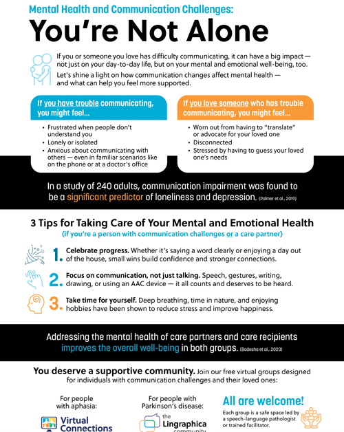 Caring for someone with communication challenges is a powerful act of love. It’s also exhausting, confusing, or isolating at times. These tools were created to lighten your load, improve your communication, and remind you that your needs matter, too.